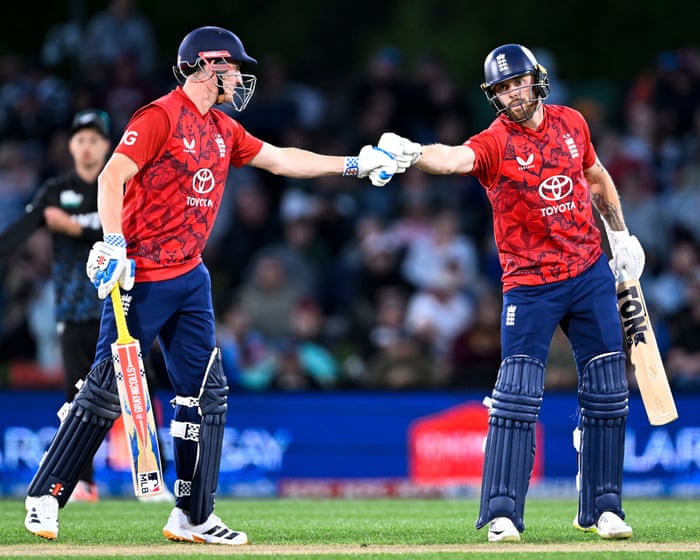 England, 236-4, beat New Zealand, 171, by 65 runsRashid takes four wickets after Salt’s 85 and Brook’s 78If the first game of this series was ruined by a downpour, the second was won by a deluge. A 129-run partnership between Phil Salt and Harry Brook powered the tourists towards a score of 236 for four, England smashing 34 boundaries and the record …